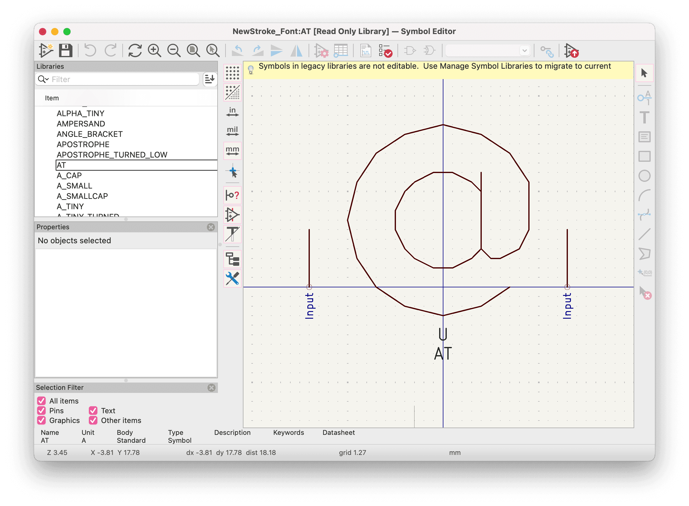 One of the most recent additions to the vector font family is NewStroke, a font designed for KiCAD. Interestingly, instead of being designed in a more common type of CAD software, NewStroke actually seems to have been designed inside the KiCAD Footprint Editor. I am not sure why this was done.